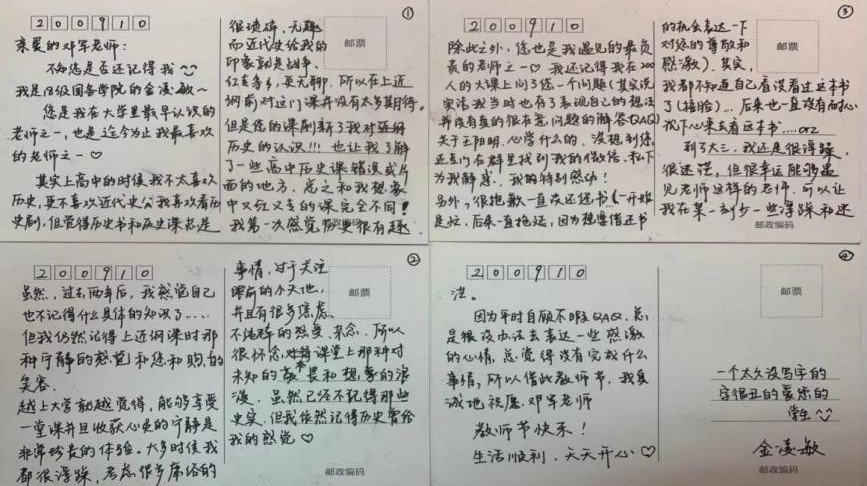 不知您是否还记得我?我是18级国务学院的金凌敏。您是我在大学里最早认识的老师之一,也是迄今为止我最喜欢的老师之一。
