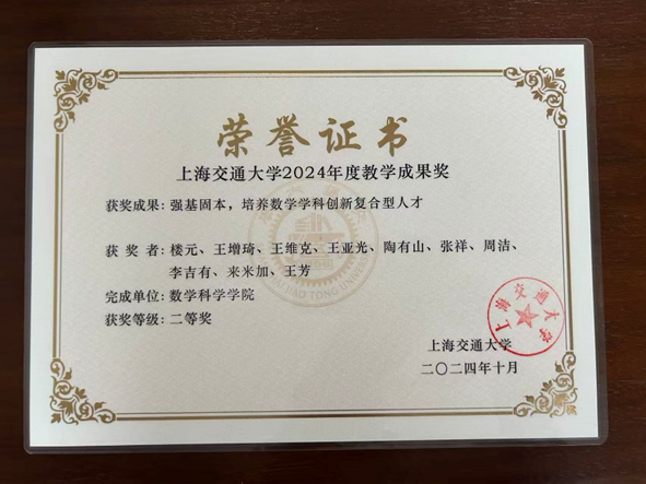 上海交通大学2024年度教学成果奖二等奖(排名第五)